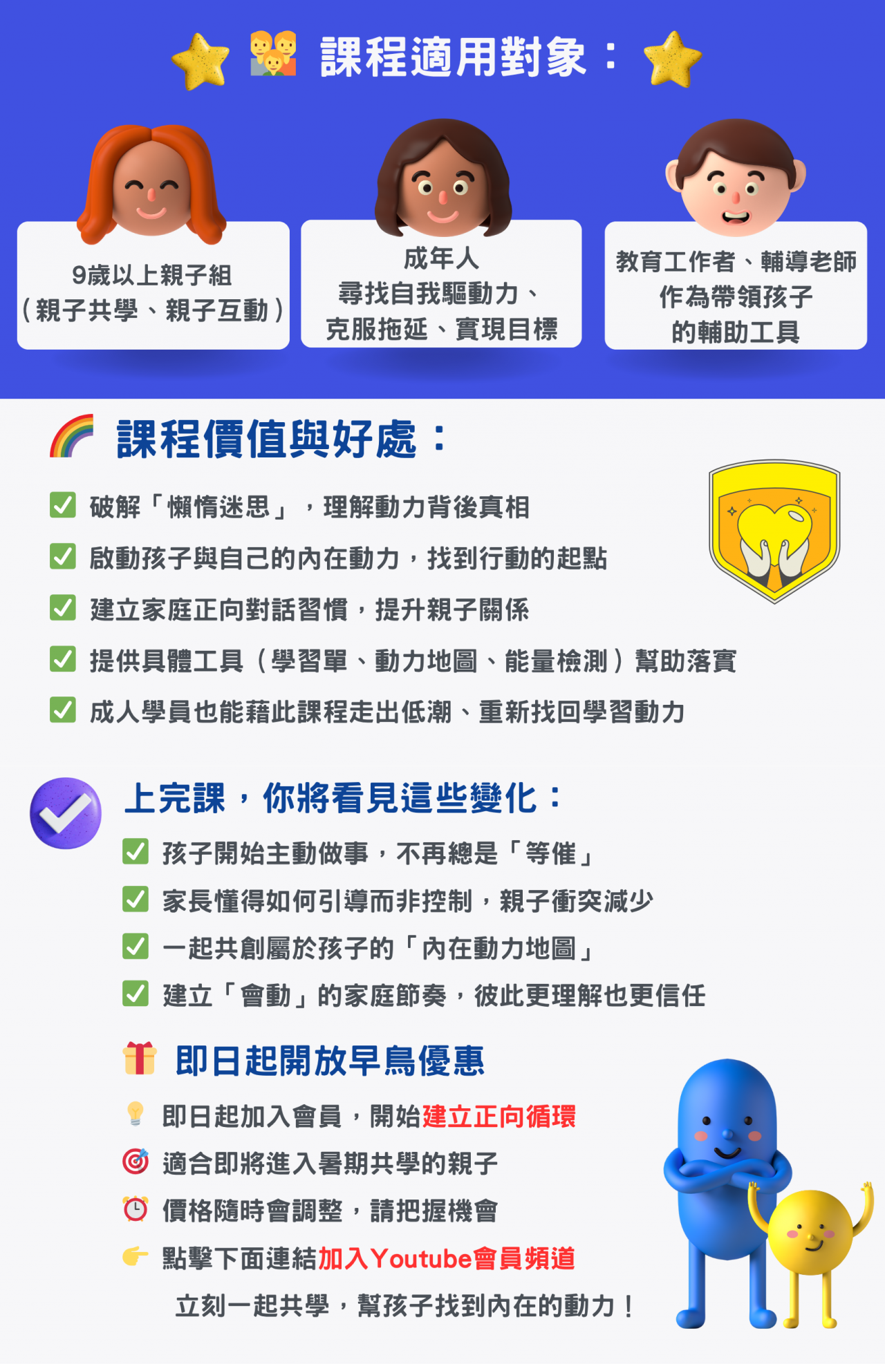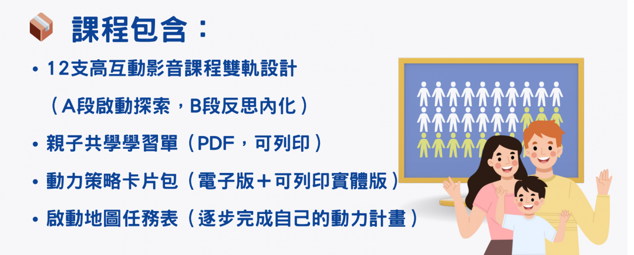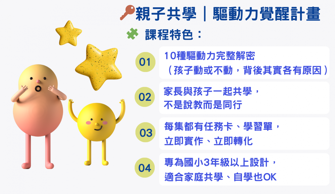 設計理念是「讓你輕鬆陪跑,而不是當教練主導」,只要你願意一起學,就已經是最棒的共學了!