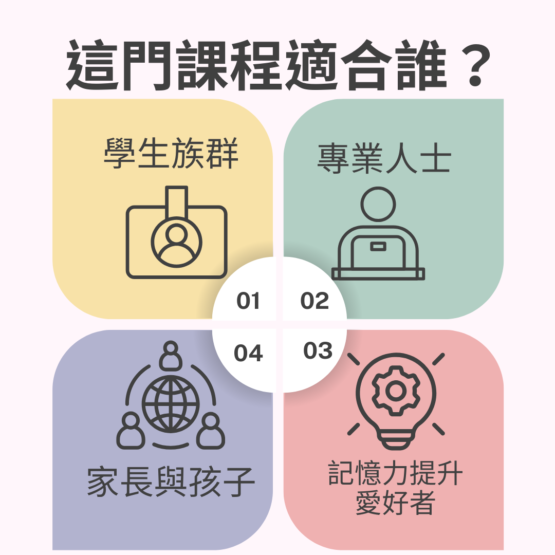 想讓孩子在學習上不再困難,享受記憶的樂趣?這門課程不僅適合青少年,也適合家長和孩子一起學習,讓記憶變得充滿創意和趣味,共同進步!